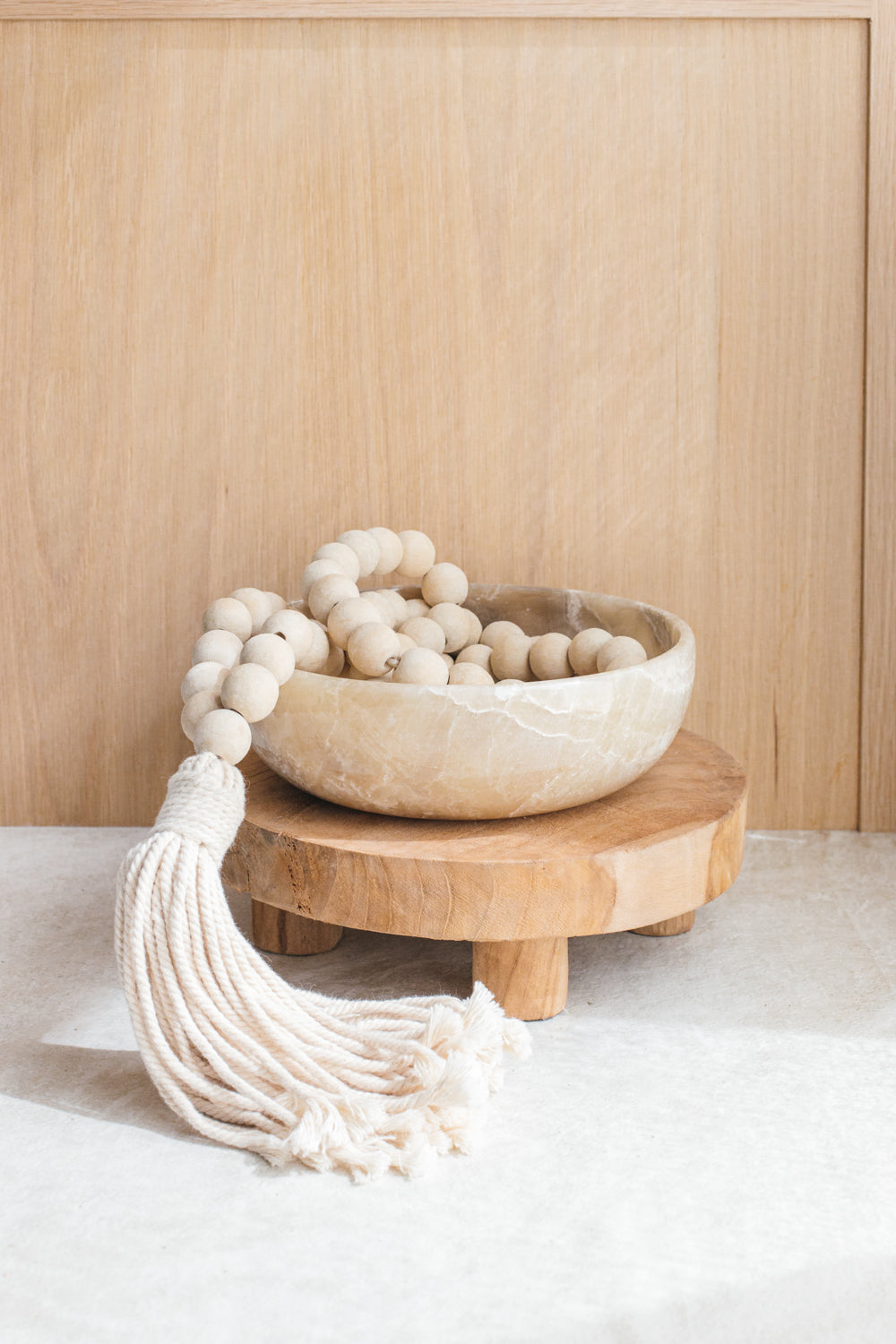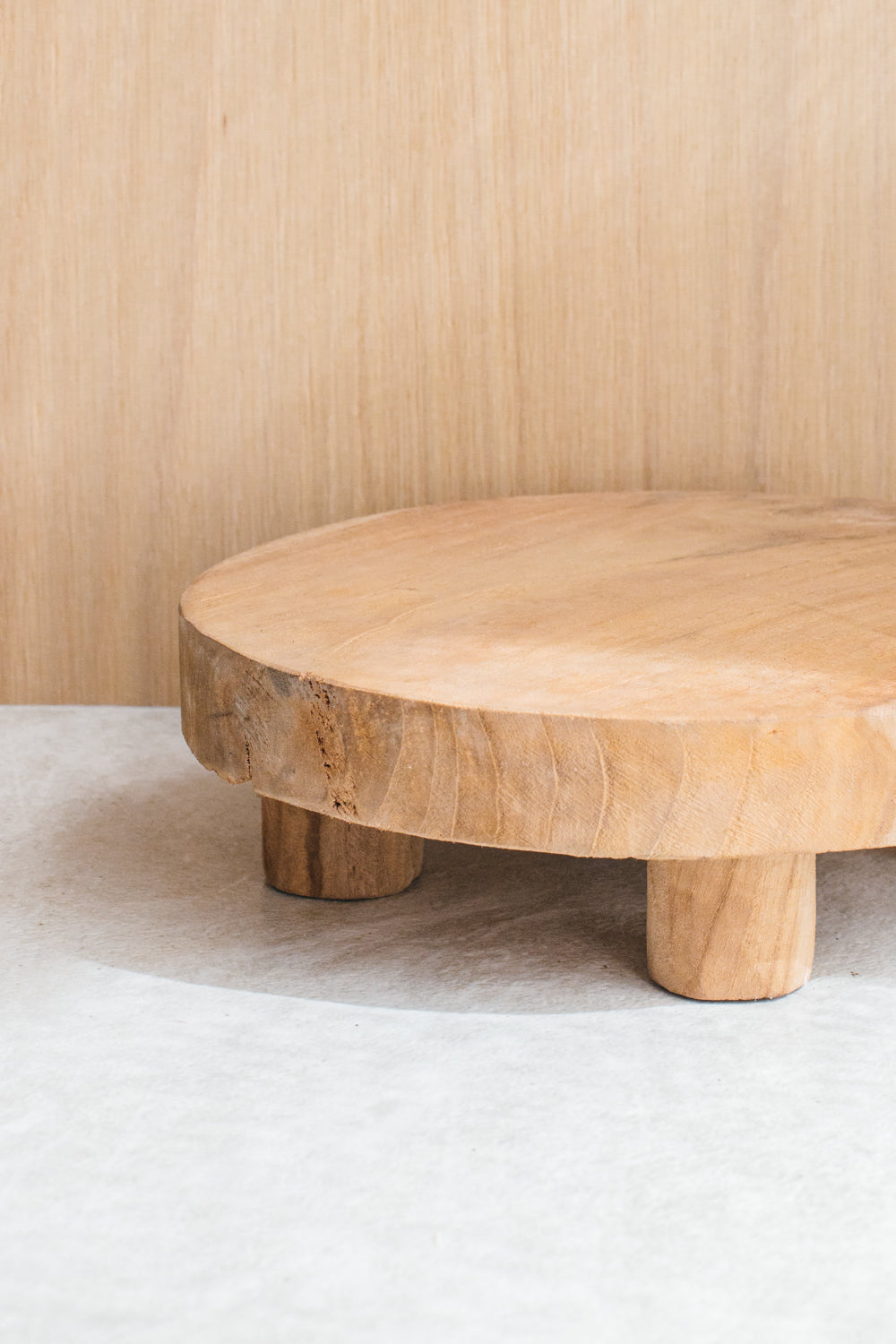 Handmade from recycled teak, you will always find this footed tray perfect for any room and situation. Use it in your bathroom or kitchen for an elevated shelf for handwash and styling items, or as a cheese board for a grazing table.