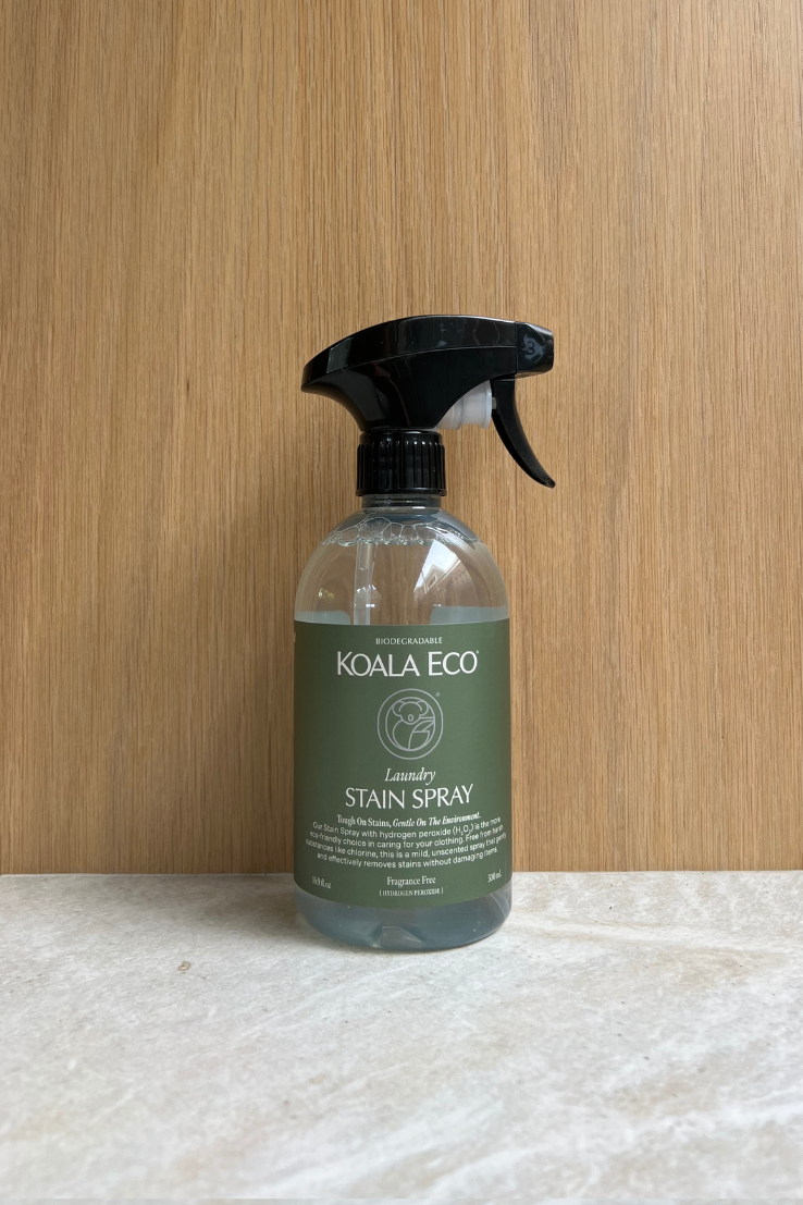 Koala Eco's award-winning stain spray with hydrogen peroxide (H₂O₂) is the more eco-friendly choice in caring for your clothing.