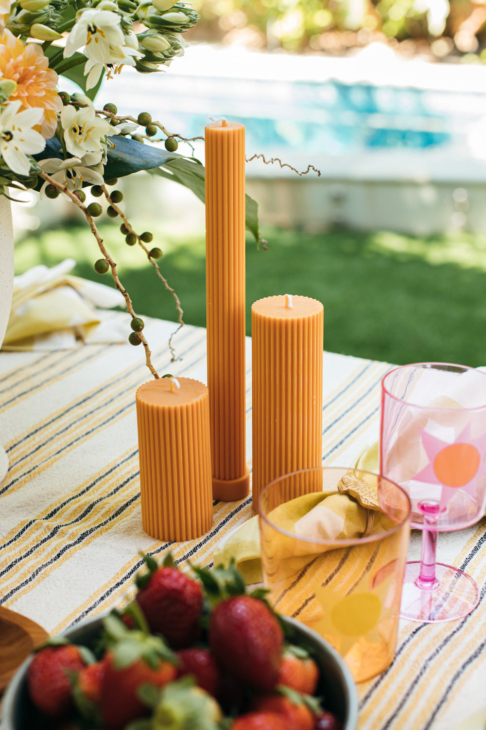 Inspired by Roman architecture, the Pillar Collection will bring an elegant touch to your home or office. Featuring a fluted design that extends the length of the candle, they are gorgeous on their own or in a holder.